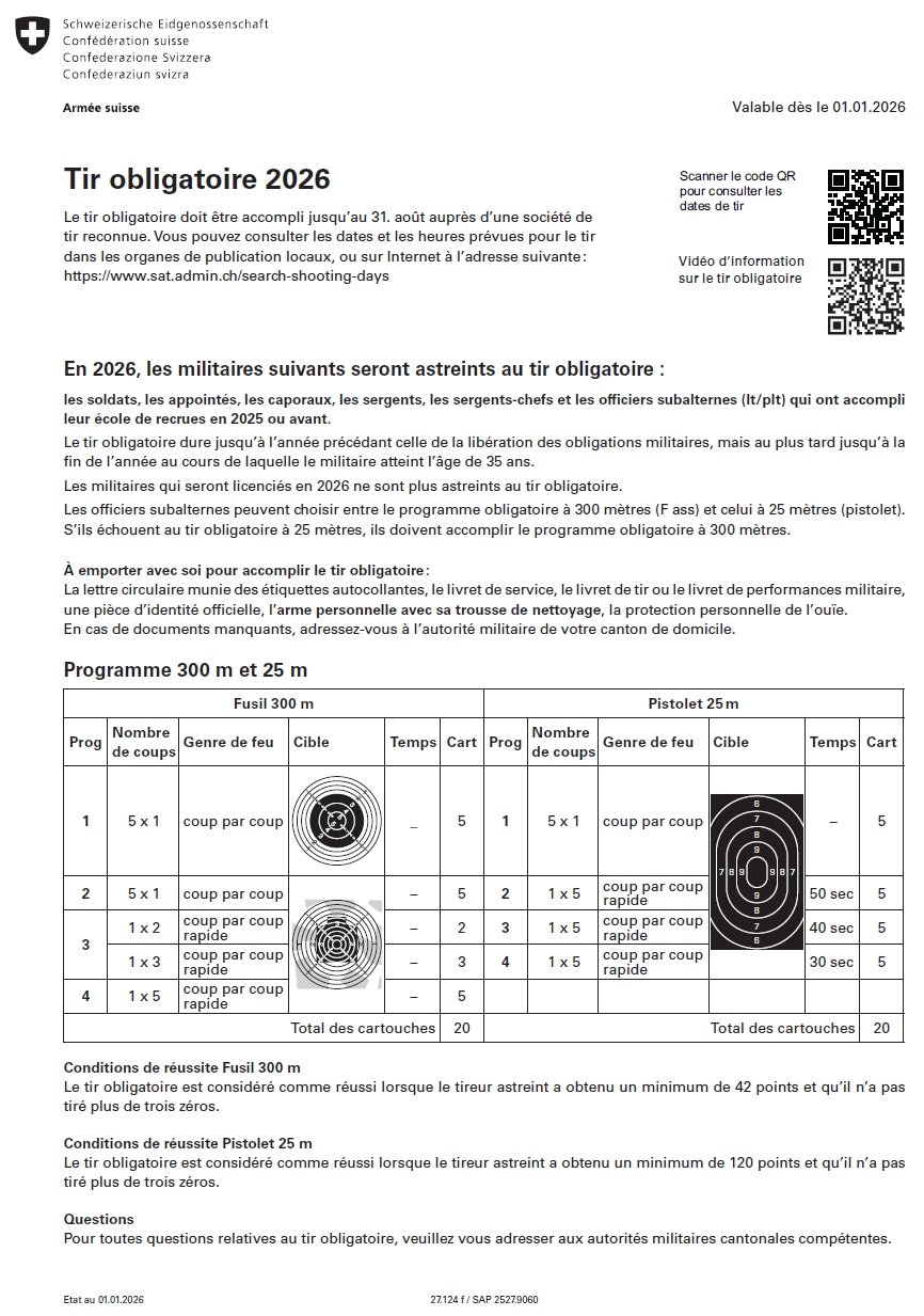 Calendrier des Tirs 2026